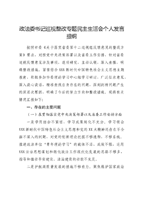政法委书记巡视整改专题民主生活会个人发言提纲.docx