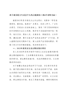 班子成员民主生活会个人发言提纲局(新6个对照方面).docx