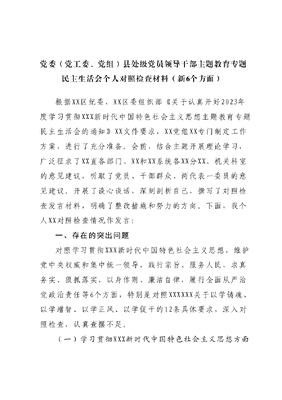 党委(党工委、党组)县处级党员领导干部主题教育专题民主生活会个人对照检查材料(新六个对照方面).docx