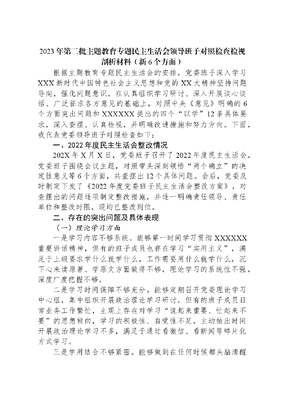 2023年第二批主题教育专题民主生活会领导班子对照检查检视剖析材料(新六个对照方面).docx