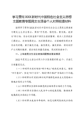 2023年度主题教育民主生活会个人对照检视材料.docx