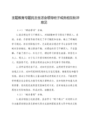主题教育专题民主生活会领导班子成员相互批评意见01.docx