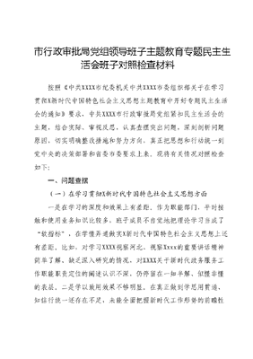 市行政审批局党组领导班子主题教育专题民主生活会班子对照检查材料.docx