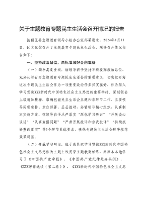 关于主题教育专题民主生活会召开情况的报告01.docx