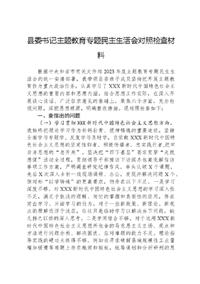 县委书记主题教育专题民主生活会对照检查材料.docx