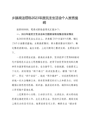 乡镇政法领导2023年度民主生活会个人发言提纲.docx