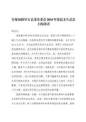 在参加指导X县委常委会2024年度民主生活会上的讲话.docx
