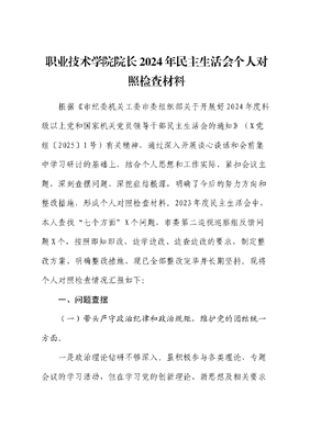 职业技术学院院长2024年民主生活会个人对照检查材料.docx