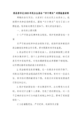 某县委书记2025年民主生活会“四个带头”对照检查材料.docx