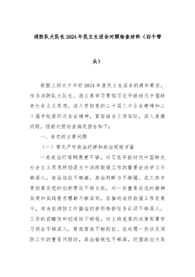消防队大队长2024年民主生活会对照检查材料(四个带头).docx