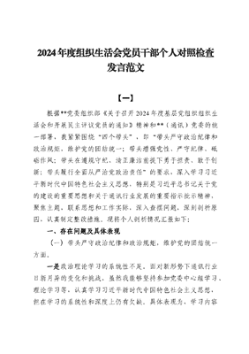 2024年度组织生活会四个带头个人对照检查提纲6篇.docx
