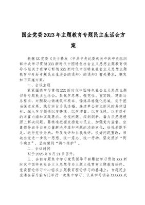 国企党委2023年主题教育专题民主生活会方案.docx