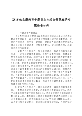 XX单位主题教育专题民主生活会领导班子对照检查材料.docx