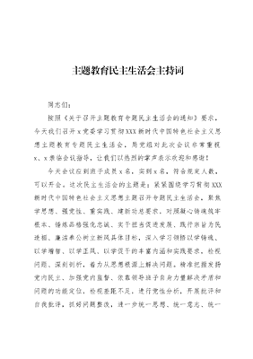 主题教育民主生活会主持词.docx