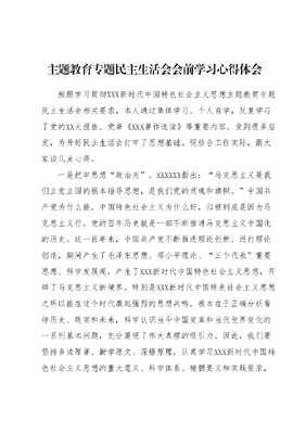 主题教育专题民主生活会会前学习心得体会.docx