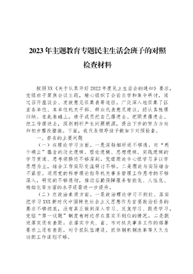 2023年主题教育专题民主生活会班子的对照检查材料.docx