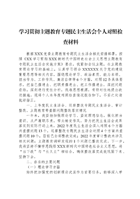 学习贯彻主题教育专题民主生活会个人对照检查材料.docx