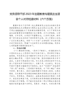 党员领导干部2023年主题教育专题民主生活会个人对照检查材料(六个方面).docx