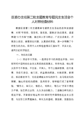 区委办主任第二批主题教育专题民主生活会个人对照检查材料.docx