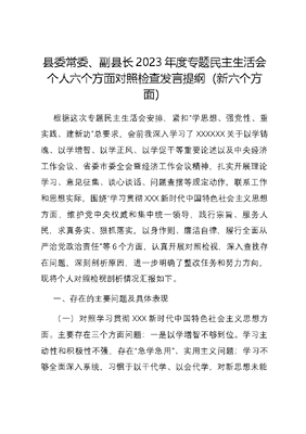 县委常委、副县长2023年度专题民主生活会个人六个方面对照检查发言提纲(新六个方面).docx