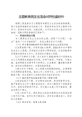 主题教育民主生活会对照检查材料.docx