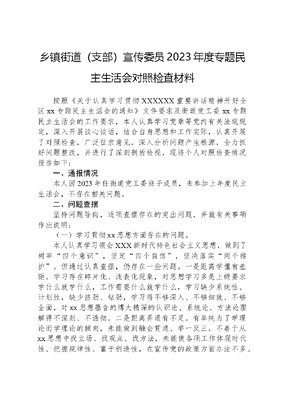 乡镇街道(支部)宣传委员2023年度主题教育民主生活会对照检查材料.docx