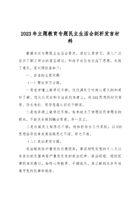 2023年主题教育专题民主生活会剖析发言材料1.docx
