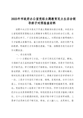 2023年市政府办公室党组主题教育民主生活会领导班子对照检查材料.docx