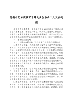 党委书记主题教育专题民主生活会个人发言提纲.docx