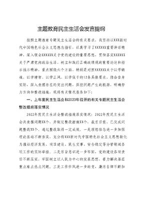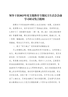 领导干部2023年度主题教育专题民主生活会会前学习研讨发言提纲.docx