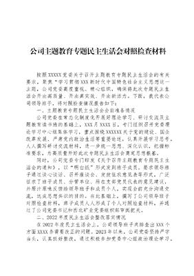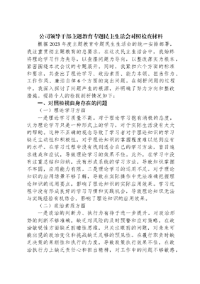 公司领导干部主题教育专题民主生活会对照检查材料.docx