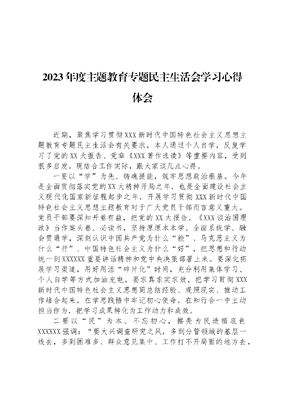 2023年度主题教育专题民主生活会学习心得体会.docx