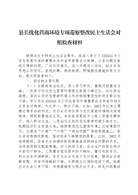 县长优化营商环境专项巡察整改民主生活会对照检查材料.docx