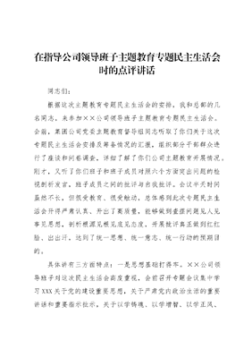 在指导公司领导班子主题教育专题民主生活会时的点评讲话.docx