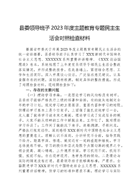 县委领导班子2023年度主题教育专题民主生活会对照检查材料.docx