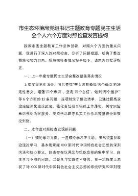 市生态环境局党组书记主题教育专题民主生活会个人六个方面对照检查发言提纲.docx