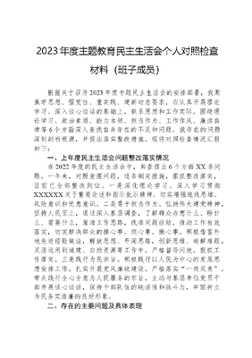 2023年度主题教育民主生活会个人对照检查材料(班子成员).docx