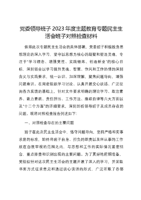 党委领导班子2023年度主题教育专题民主生活会班子对照检查材料.docx