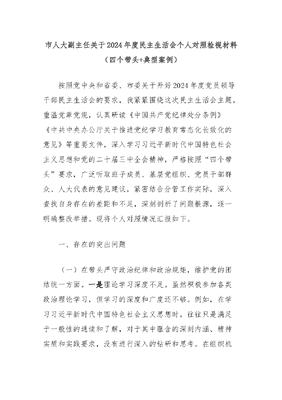 市人大副主任关于2024年度民主生活会个人对照检视材料(四个带头+典型案例).docx