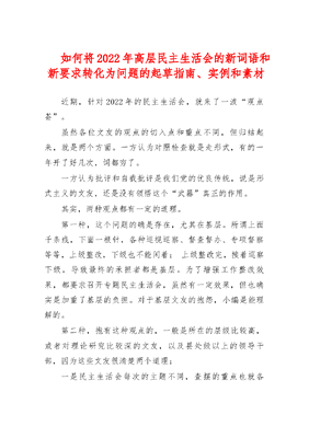 (33条)将2022年高层民主生活会的新词语和新要求转化为问题的起草指南、实例和素材.doc