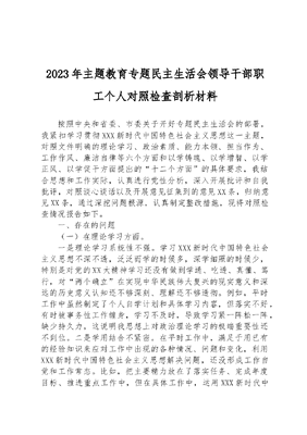 2023年主题教育专题民主生活会领导干部职工个人对照检查剖析材料.docx