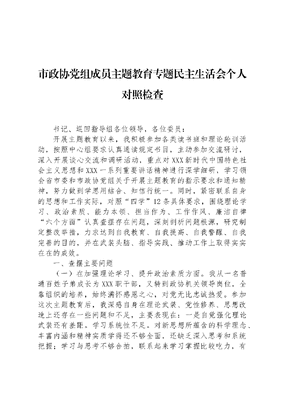 市政协党组成员主题教育专题民主生活会个人对照检查.docx