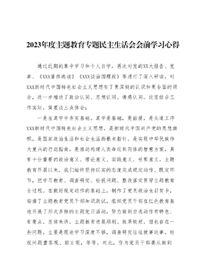 2023年度主题教育专题民主生活会会前学习心得.docx