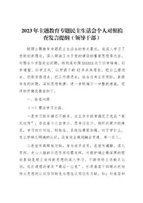 2023年主题教育专题民主生活会个人对照检查发言提纲(领导干部).docx