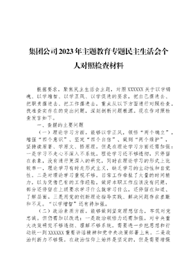 集团公司2023年主题教育专题民主生活会个人对照检查材料.docx