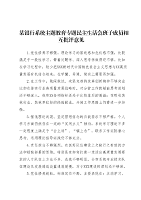 某银行系统主题教育专题民主生活会班子成员相互批评意见.docx