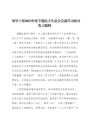 领导干部2023年度专题民主生活会会前学习研讨发言提纲.docx