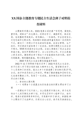 XX国企主题教育专题民主生活会班子对照检查材料.docx