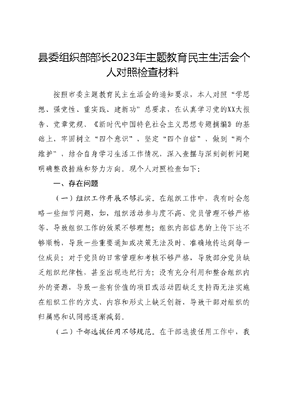 县委组织部部长2023年主题教育民主生活会个人对照检查材料.docx