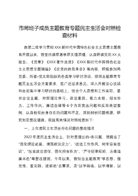 市局班子成员主题教育专题民主生活会六个方面个人对照检查材料.docx